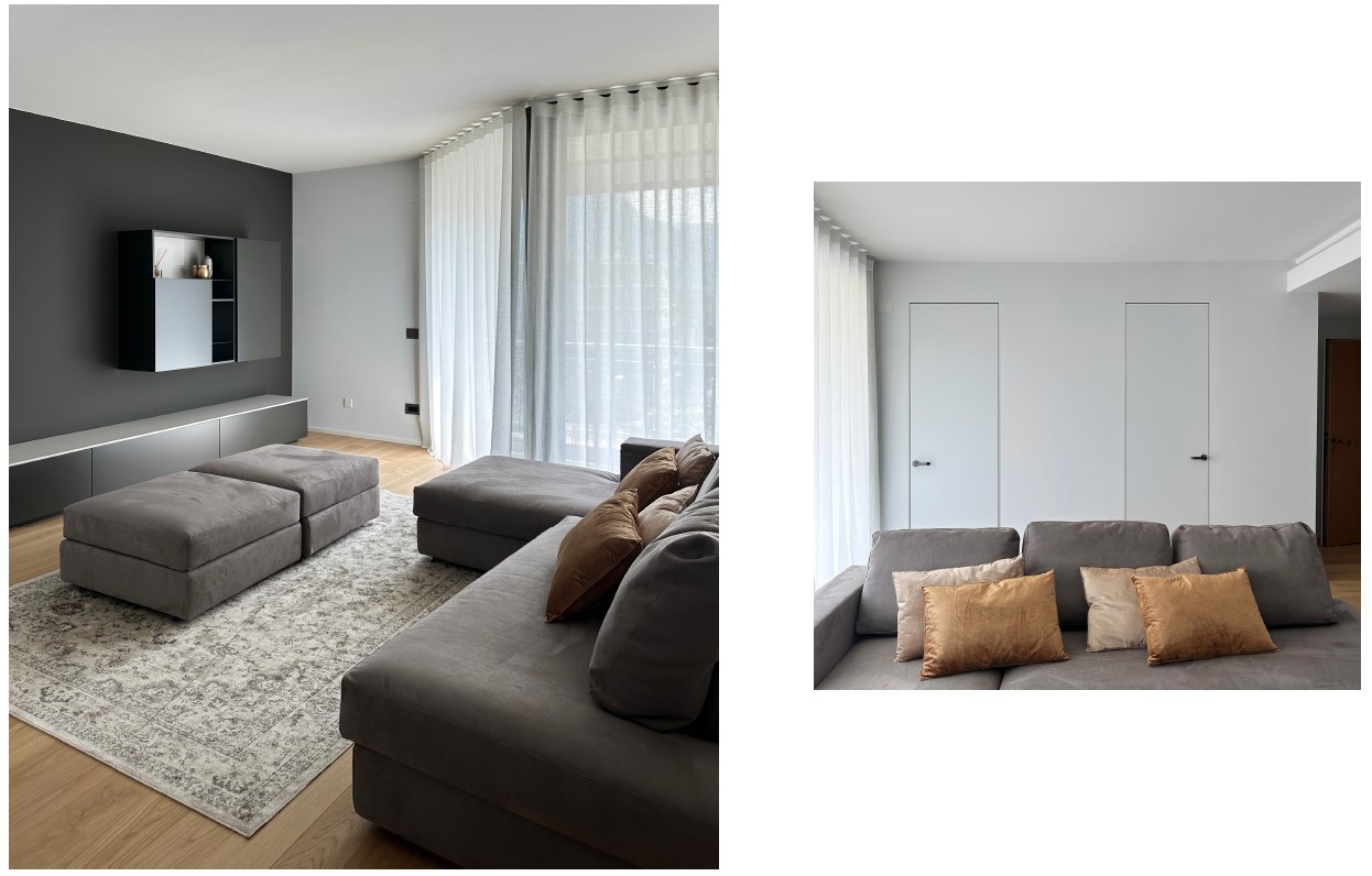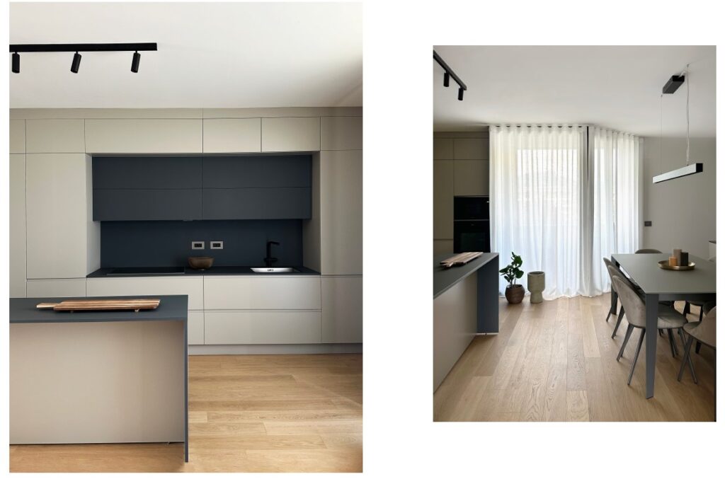 Questi appartamenti vengono venduti completi di arredi su misura, attentamente progettati per mantenere una continuità di stile in tutto l’ambiente. Ogni elemento è stato scelto con cura per riflettere un’estetica raffinata e contemporanea, utilizzando materiali di pregio per pavimenti e rivestimenti.