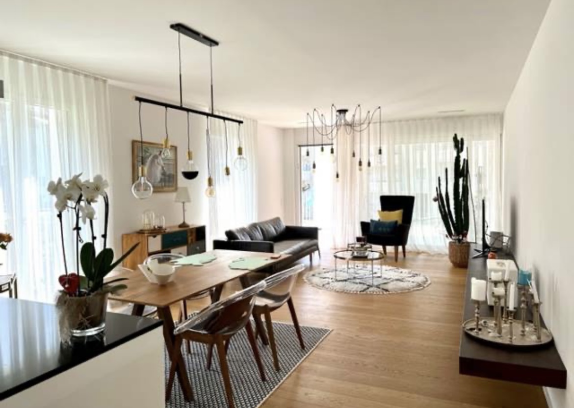 Affitto mensile: CHF 1.900 (più CHF 300 di spese e CHF 100 per il posto auto). Animali di piccola taglia ammessi.