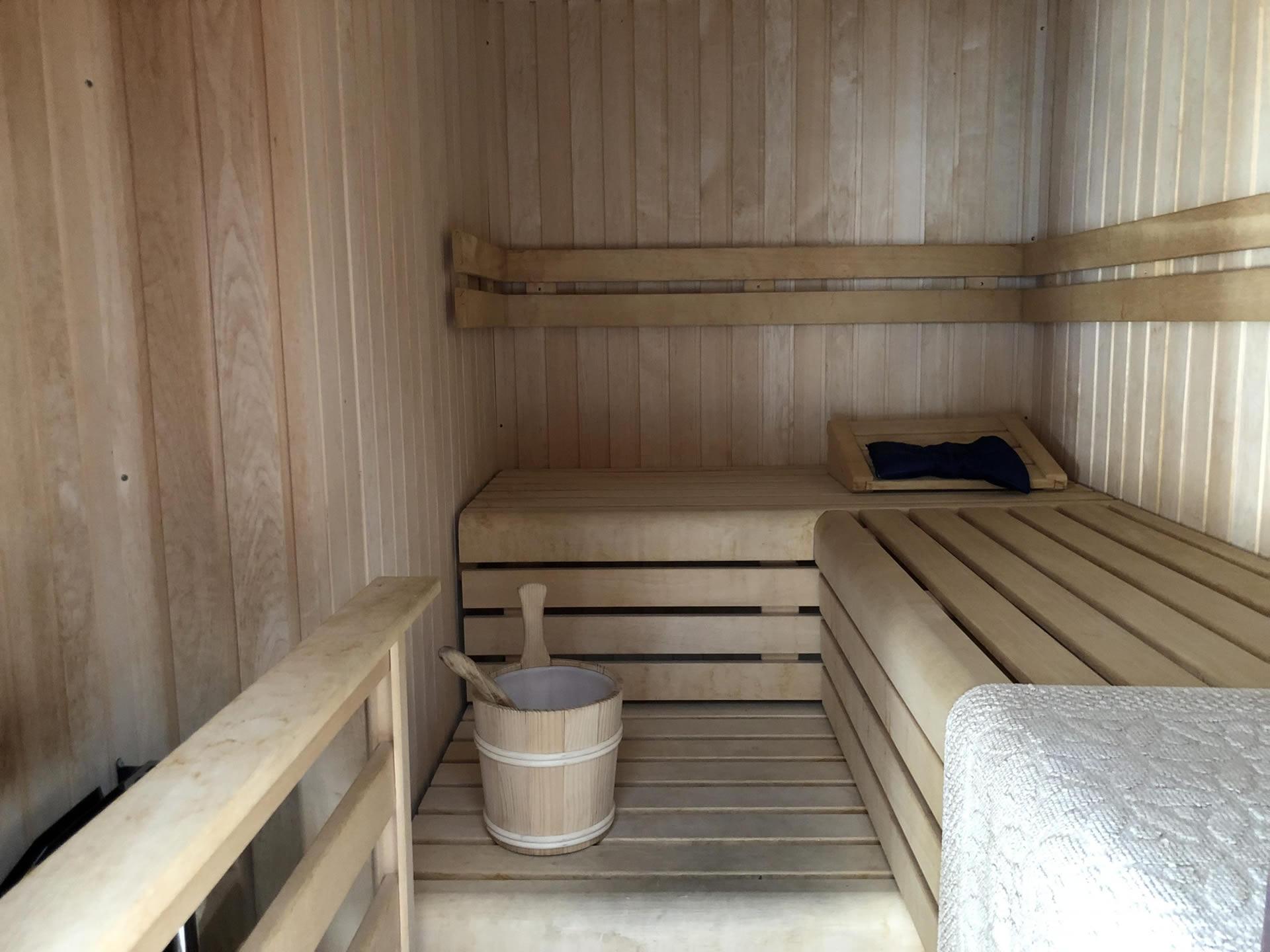 Al piano seminterrato la piscina interna riscaldata si protende attraverso una grande vetrata verso l’esterno creando un dentro e un fuori. Ai lati della piscina sono collocati una zona idromassaggio con una vasca circolare, sauna e un’area fitness mentre nella parte retrostante sono presenti una lavanderia, una cantina e un deposito.